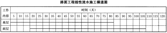 计算基层和面层的流水工期并按表绘制路面工程线性流水施工横道图(注:将表抄绘在答题纸上作答)。