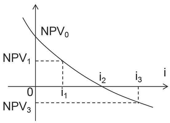 某投资方案的净现值与折现率之间的关系如下图所示。图中表明的正确结论有( )。
