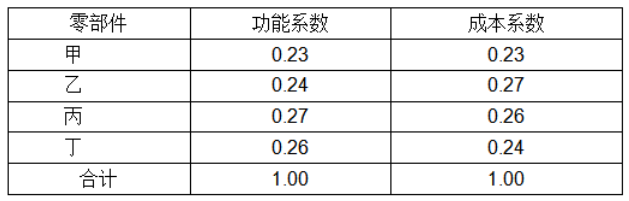 <p>某产品四种零部件的功能指数和成本指数如下表。该产品的优先改进对象是( )。<img title="" alt="" wid
