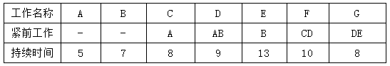 某工程项目由A、B、C、D、E、F、G组成,工作持续时间及逻辑关系如下,当使用单代号网络图表达该项目的进度计划,所有相邻工作之间的时间间隔的最大值( )天。