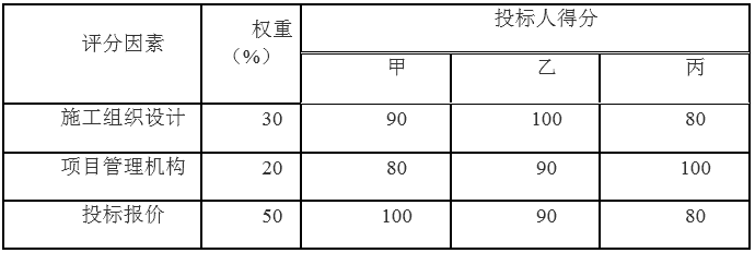某招标工程采用综合评估法评标,报价越低的报价得分越高,评分因素、权重比例、各投标人得分情况见下表。则推荐的第一中标候选人应为( )。