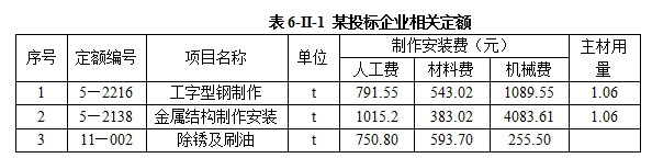 1.某聚乙烯装置中的联合平台金属结构制作安装工程(工程量清单统一项目编码为030507001),工程内容包括制作安装和刷油,安装按以下数据及要求进行招标和投标。(1)金属结构设计总重100t,其中钢板35t、型钢45t、钢格栅板20t。型钢中有20t为工字钢,需要钢板制作。(2)相关资料价格为钢板4300员/t、型钢4700元/t、钢格栅板8000元/t。(3)某投标企业相关定额见表6-Ⅱ-1。