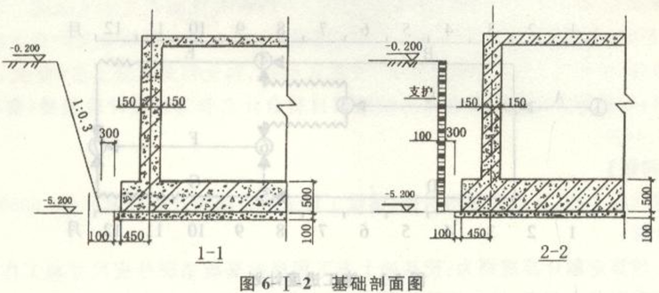 某建筑物地下室挖土方工程,内容包括:挖基础土方和基础土方回填,基础土方回填采用打夯机夯实,除基础回填所需土方外,余土全部用自卸汽车外运800m至弃土场。提供的施工场地,已按设计室外地坪—0.20m平整,土质为三类土,采取施工排水措施。根据图6-Ⅰ-1基础平面图、图6-Ⅰ-2剖面图所示的以及现场环境条件和施工经验,确定土方开挖方案为:基坑1-1剖面边坡按1:0.3放坡开挖外,其余边坡均采用坑壁支护垂直开挖,采用挖掘机开挖基坑。假设施工坡道等附加挖土忽略不计,已知垫层底面积586.21m2。有关施工内容的预算定额直接费单价见表6-Ⅰ-1。