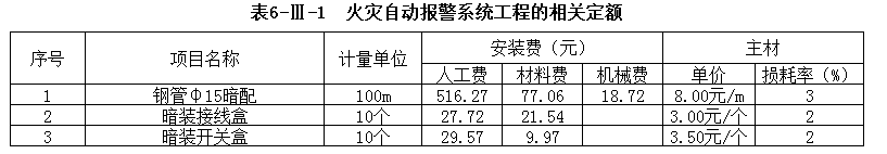 某商店一层火灾自动报警系统工程如图6-III所示。火灾自动报警系统工程的相关定额见表6-III-1。
