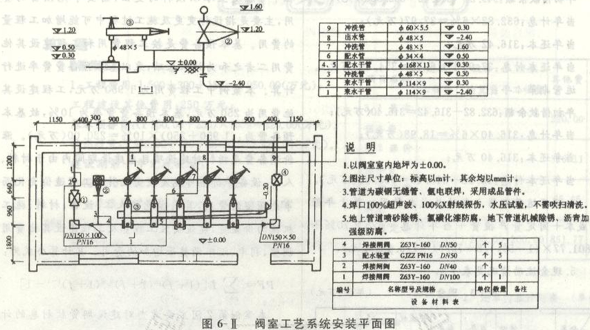 某工程背景资料如下:(1)图6-II为某配水阀室工艺管道系统安装图。(2)某配水阀室管道的清单工程量有关情况如下:Φ168×13管道5.5m;Φ114×9管道6m,其中地下敷设3.5m;Φ60×5.5管道3.2m;Φ48×5;管道33m,其中地下敷设18m;Φ34×4管道8.5m。(3)管道工程相关定额见表6-II-1。