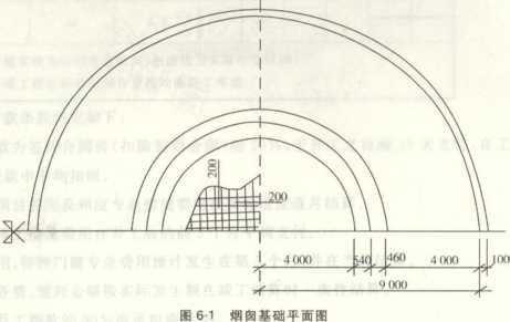 Ⅰ.土建工程某钢筋混凝土圆形烟囱基础设计尺寸,如图6-1所示。其中基础垫层采用C15混凝土,圆形满堂基础采用C30混凝土,地基土壤类别为三类土。土方开挖底部施工所需的工作,面宽度为300m,放坡系数为1:0.33,放坡自垫层上表面计算。