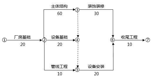 某工业项目,业主采用工程量清单招标方式确定了承包商,并与承包商按照《建设工程施工合同(示范文本)》签订了工程施工合同。施工合同约定:项目生产设备由业主购买;开工日期为6月1日,合同工期为120天;工期每提前(或拖后)1 天,奖励(或罚款)1万元(含规费、税金)。工程项目开工前,承包商编制了施工总进度计划,如图4-1所示(时间单位:天),并得到监理人的批准。工程项目施工过程中,发生了如下事件: