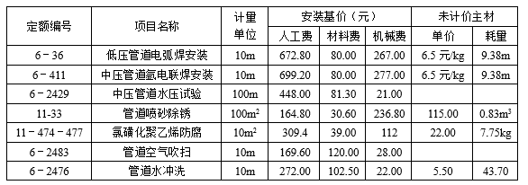 (4)Ф219×32碳钢管道工程的相关定额见下表: