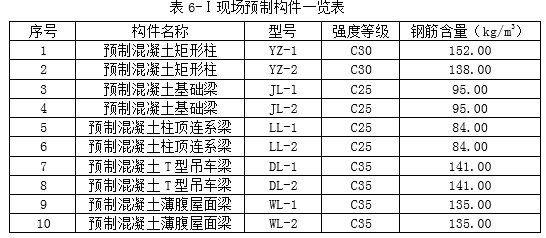 Ⅰ.土建工程背景资料:某拟建项目机修车间,厂房设计方案采用预制钢筋混凝土排架结构。其上部结构系统如图6-Ⅰ所示。结构体系中现场预制标准构件和非标准构件的混凝土强度等级、设计控制参考钢筋含量等见表6-Ⅰ所示: