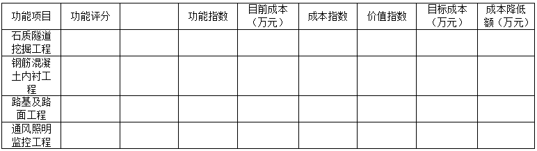 <p>计算该设计方案中各功能项目的价值指数、目标成本和目标成本降低额,将计算结果填写在答题卡表2.2中。<img title="
