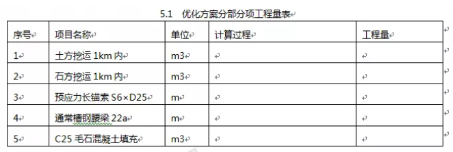 根据图5.2中相关数据,按《房屋建筑与装饰工程工程量计算规范》(GB50854-2013)的计算规则,在答题卡表5.1中,列式计算该预应力长锚索边坡支护优化方案分部分项工程量(土石方工程量中土方、石方的比例按5:5计算)表。