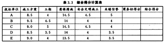 按照评标办法,计算各投标单位的综合得分,并把计算结果填入表3.3中。(计算结果均保留两位小数)