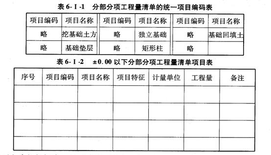 列式计算表6-Ⅰ-1“分部分项工程量清单的统一项目编码表”所示的±0.00以下分部分项工程清单工程量,并编制表6-Ⅰ-2“±0.00以下分部分项工程量清单项目表”。