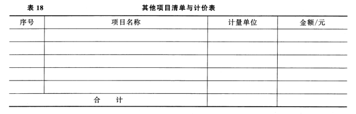 编制工程其他项目清单及计价表,填入表18“其他项目清单与计价表”中。