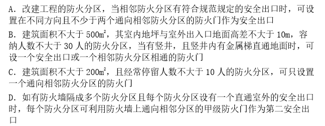 <p>当人防工程仅设一个安全出口时,关于检查要求下列叙述不正确的是( )。<img title="" alt="" width=
