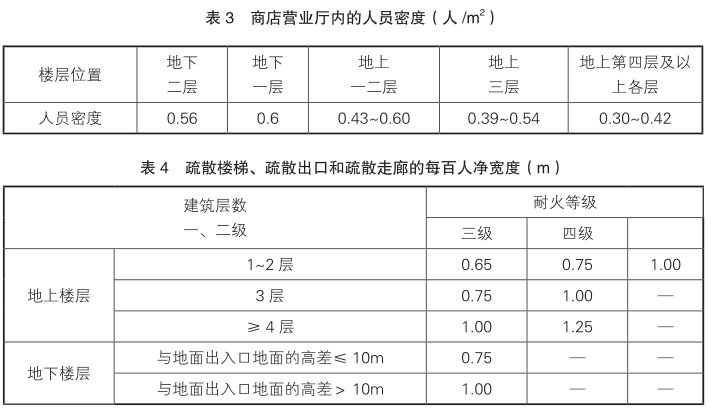 指出购物中心外墙外保温系统防火措施存在的问题。(提示:商店营业厅人员密度及百人宽度指标分别见表3、表4)