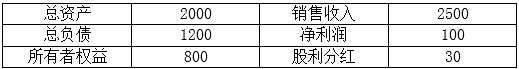 假设一家公司的财务信息如下(单位:万元)。