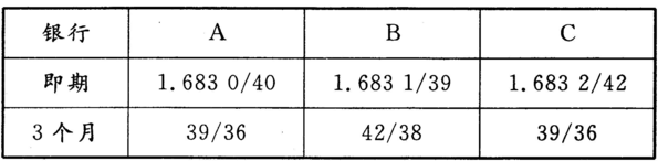 有A、B、C三家银行GBP/USD的即期和远期汇率报价如下: