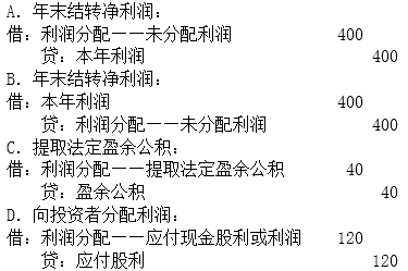 <p>根据资料(3),下列各项中,甲公司年末结转净利润及利润分配的会计处理正确的是( )。<img title="" alt="