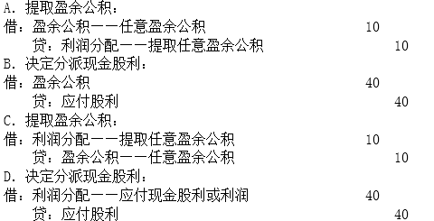 <p>根据资料(2),下列各项中,甲公司决定提取任意盈余公积和分派现金股利会计处理正确的是( )。<img title="" a