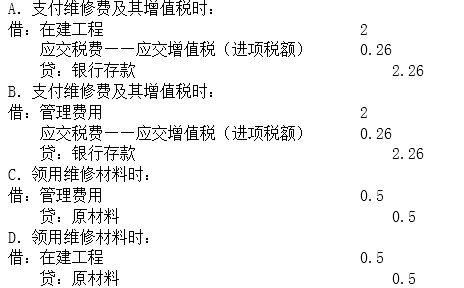 <p>根据资料(2),下列各项中,M设备日常修理的会计处理正确的是( )。<img title="" alt="" src="h