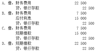 2020年7月1日,某企业向银行借入生产经营用短期借款200万元,期限为6个月,年利率为4.5%,本金到期一次归还,利息按月计提、按季度支付,不考虑其他因素。下列各项中,该企业9月30日支付利息的会计处理正确的是( )。