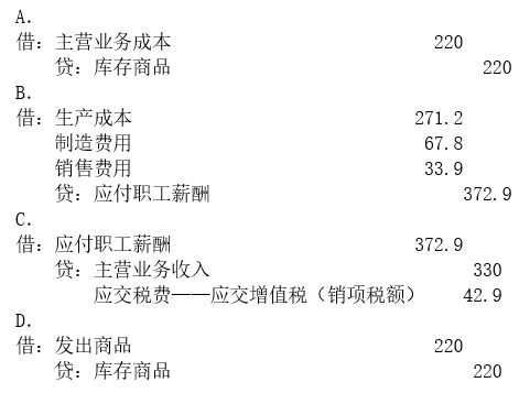 <p>根据资料(4),下列各项中,甲公司向职工发放福利的会计处理正确的是( )。<img title="" alt="" src