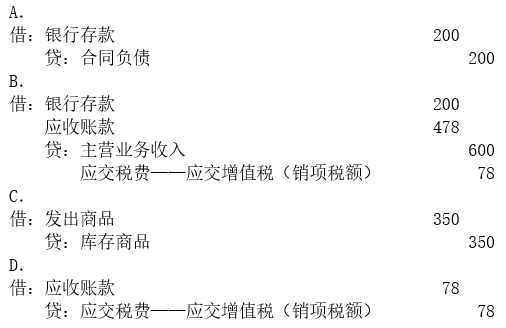 <p>根据资料(1),甲公司向乙公司销售产品的会计处理结果正确的是( )。<img title="" alt="" src="h