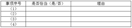 针对资料四第(1)至(4)项,假定不考虑其他条件,逐项指岀A注册会计师的做法是否恰当。如不恰当,简要说明理由。将答案直接填入答题区的相应表格内。