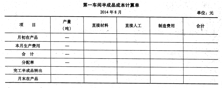<p>编制第一车间的半成品成本计算单(结果填入下方表格中,不用列出计算过程)。<img title="" alt="" widt