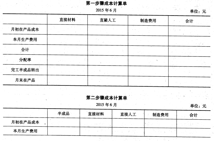 <p>编制第一、第二步骤成本计算单(结果填入下方表格中,不用列出计算过程)。<img title="" alt="" width