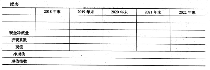 <p>计算该项目2018年末~2022年末的相关现金净流量、净现值和现值指数(计算过程和结果填入下方表格中)。<img titl