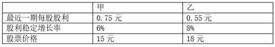 甲、乙公司已进入稳定增长状态,股票信息如下:下列关于甲、乙股票投资的说法中,正确的是( )。