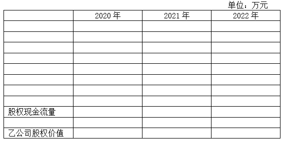 如果收购,采用股权现金流量折现模型,估计2020年初乙公司股权价值(计算过程和结果填入下方表格中)。
