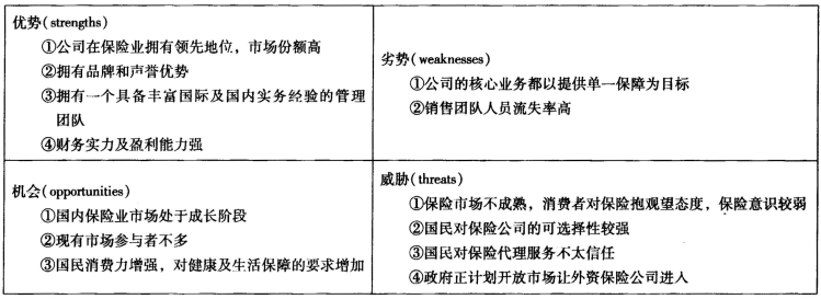 简要说明SWOT分析的内涵及用处。根据文中信息,编制一个万成保险的SWOT分析图。