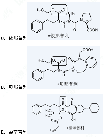 ACE抑制剂含有与锌离子作用的极性基团,为改善药物在体内的吸收将其大部分制成前药,但也有非前药型的ACE抑制剂。属于非前药型的ACE抑制剂是( )。