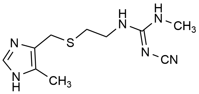 替丁类(-tidine)代表药物西咪替丁的结构式如下。关于该类药物的构效关系和应用的说法,错误的是( )。