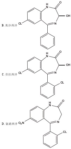 <p>地西洋的活性代谢制成的药物是( )。<img title="" alt="" width="195" height="16