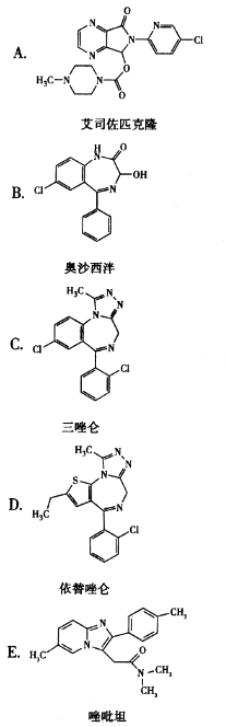 <p>1,4-苯二氮(艹卓)结构并合三氮唑环,脂溶性大,国家按一类精神药品管理的药物是( )。<img title="" alt