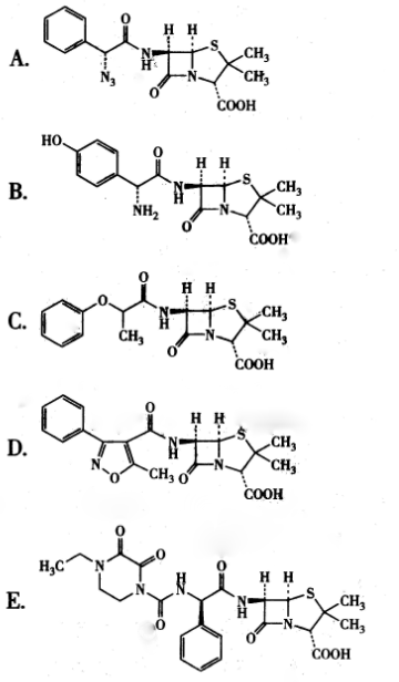 <p>在青霉素G结构6位侧链引入极性大的哌嗪酮酸基团,得到的具有抗铜绿假单胞菌活性的药物是( )。<img title="" a