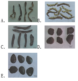 试卷附图中,图示饮片为水蛭的是( )。