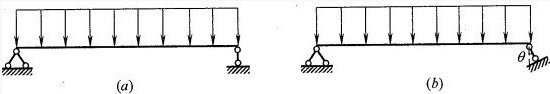 <p>图示跨度相同但支座方向不同的a、b两简支梁,在受到大小与方向相同的均布荷载作用下,两梁跨中弯矩相同。() <img al