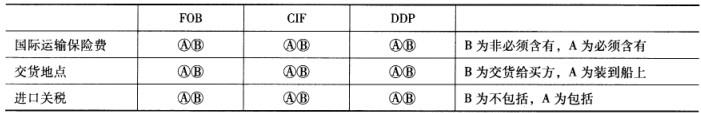 3.请选择三个贸易术语的含税情况(含税情况表示为:A.价格中包含进口关税;B.价格中不包含进口关税)。