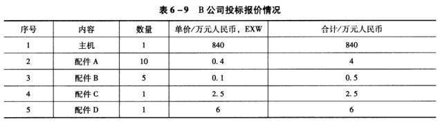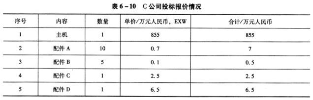 C公司投标报价情况见表6-10。
