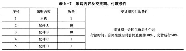 某机电产品国际招标项目,招标文件中规定的采购内容及交货期、付款条件见表6-7。