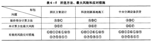 2.识别每种报价得分计算方法的最大风险,见表6-6。