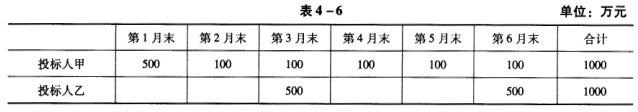 某货物招标项目的两个中标候选人投标报价的货物支付进度如表4-6所示。