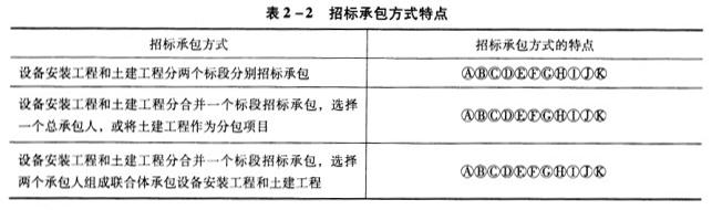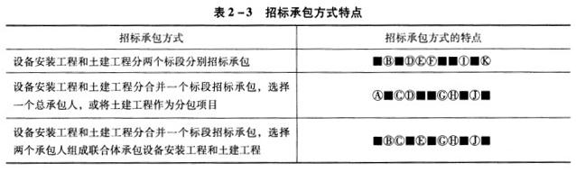 填涂三种招标承包方式的特点如表2-3所示。