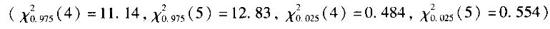 某城市日用水量服从正态分布,现随机抽取5天的用水量作为样本,求得=169万吨;s=0.50万吨,则总体标准差σ的95%的置信区间为()