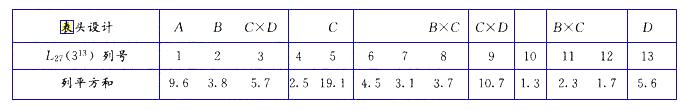 某试验需要考察4个三水平因子A,B,C,D及其交互作用B×C与C× D,选用正交表L27(313),表头设计及各列平方和如下: 因子A的均方MSA等于()